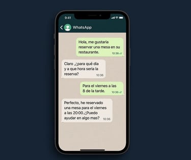 Ofrecemos distintos tipos de servicios, desde agentes de voz para responder tus llamadas hasta gestión de reservas a través de WhatsApp. Si quieres saber más puedes hablar con nosotros y comentarnos tu caso.